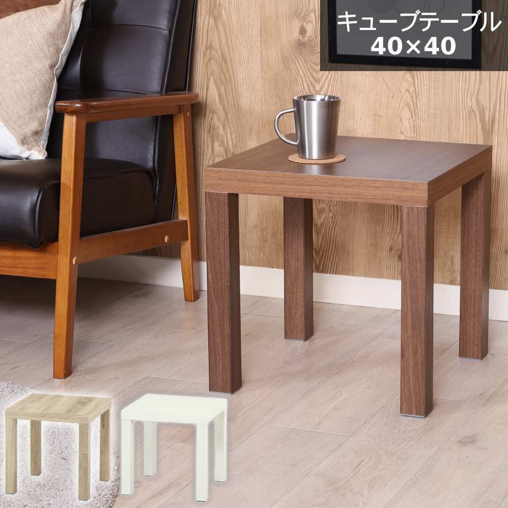 サイドテーブル キューブテーブル 40×40 おしゃれ ベッドテーブル ミニテーブル 木製 木目 正方形 40cm センターテーブル キュービックテーブル 小物置き ナチュラル 木目 ベージュ ブラウン ダイニングテーブル シンプル
