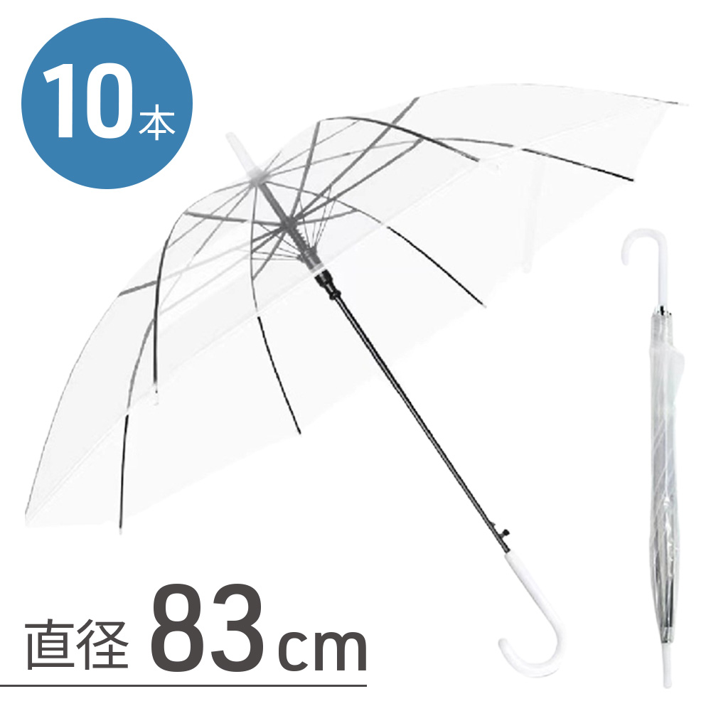 シンプルで使いやすい透明ビニール傘の10本セットです。