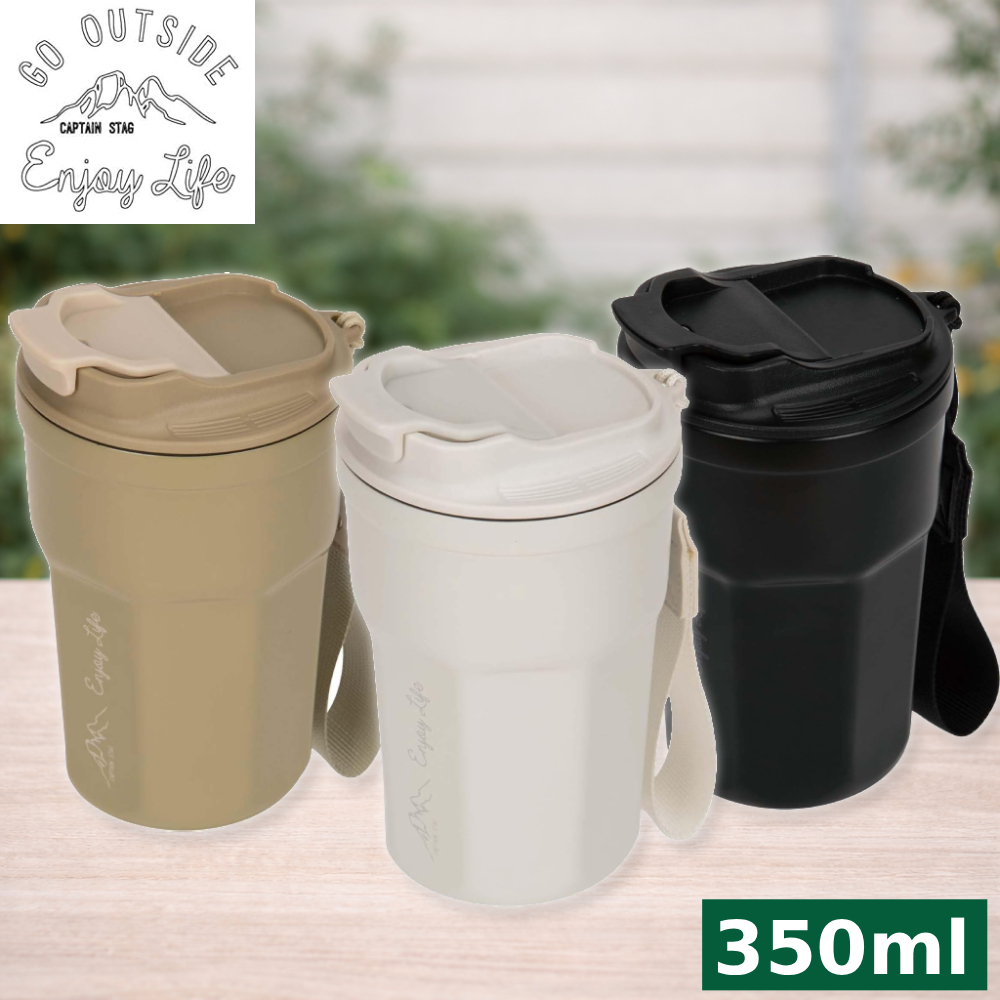 アウトドア コップ マグカップ マグ カップ タンブラー 真空二重フリップリッドタンブラー 350ml 保温保冷 蓋付き キャプテンスタッグ CAPTAIN STAG ストラップ付き モンテ ブラック ホワイト カーキ