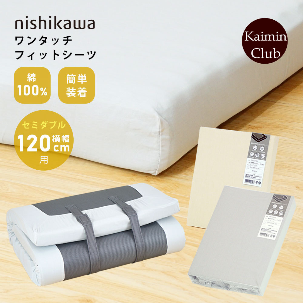 西川 フィットシーツ セミダブル 横幅120cm用 綿100% ワンタッチ マチ付き マットレス用カバーシーツ