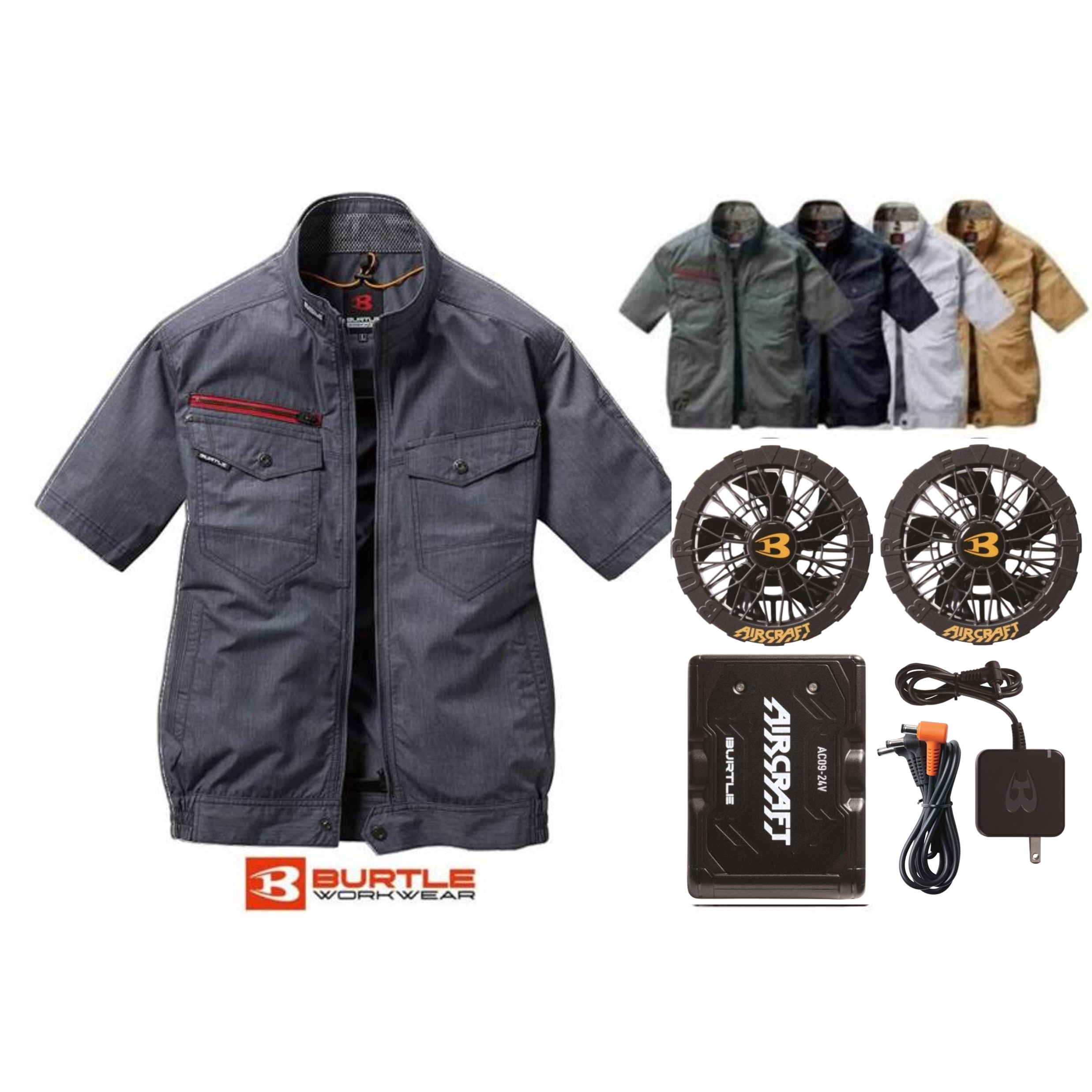 BURTLE バートル 電動ファン付きウエア 空調 作業服 AC7146 半袖 ブルゾン S〜5L バッテリーファン セット AC09 AC09-1 刺繍 作業着