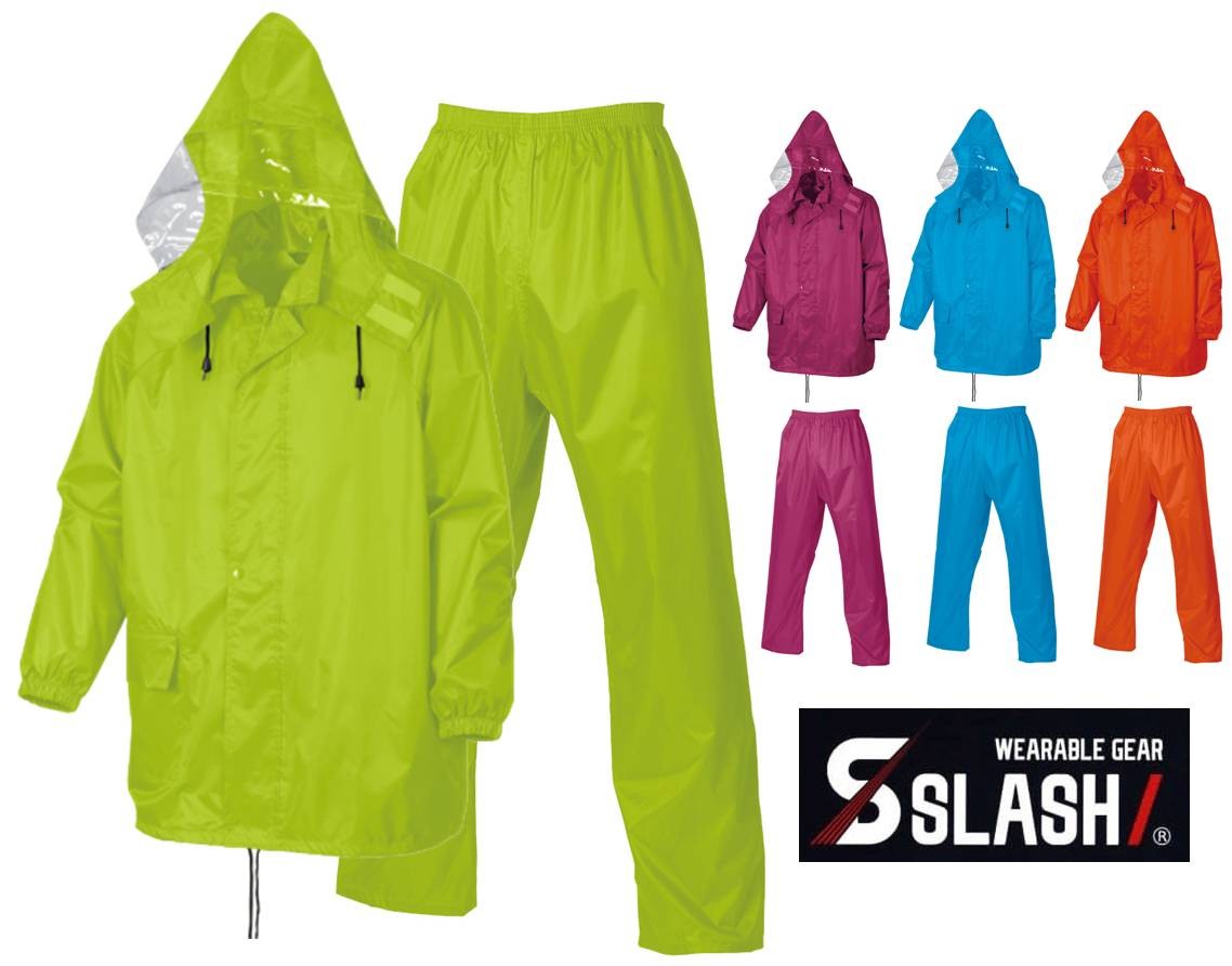 SLASH カッパ メンズ 上下組 M〜4Lなポリエステル製 上衣総裏メッシュ レインウェア 雨合羽 作業用 作業服 作業着 シンメン 3111