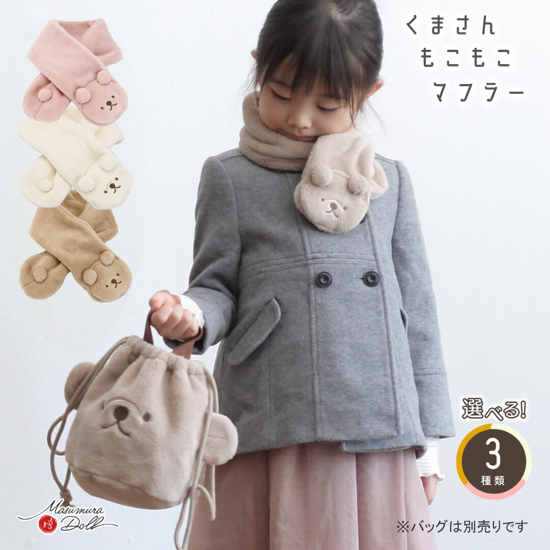 くまさんのお顔と尻尾がかわいい!もこもこボアマフラー