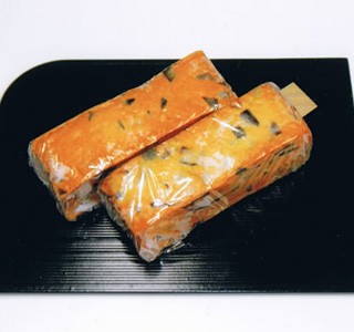すりみにたまごを練りこませ、蒸してから、軽く表面を揚げています。