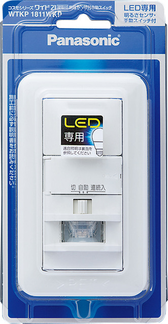 パナソニック(Panasonic) コスモシリーズワイド21 壁取付熱線センサ付自動スイッチ(2線式・3路配線対応形)(LED専用)WTKP1811WKP