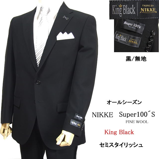 礼服【YA体】【A体】【AB体】【BB体】【NIKKE Super100´S FINE WOOL〜King Black】【オールシーズン】セミスタイリッシュタイプ フォーマルスーツ#黒無地
