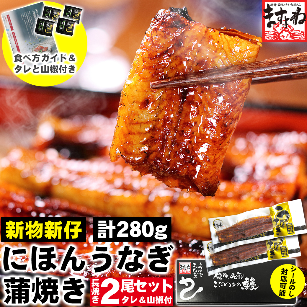 新仔にほんうなぎ蒲焼き 約140g×2尾 280g前後 うなぎ 鰻 蒲焼き ウナギ 台湾産 タレ山椒付 食べ方ガイド付 化粧箱入 シールのし対応