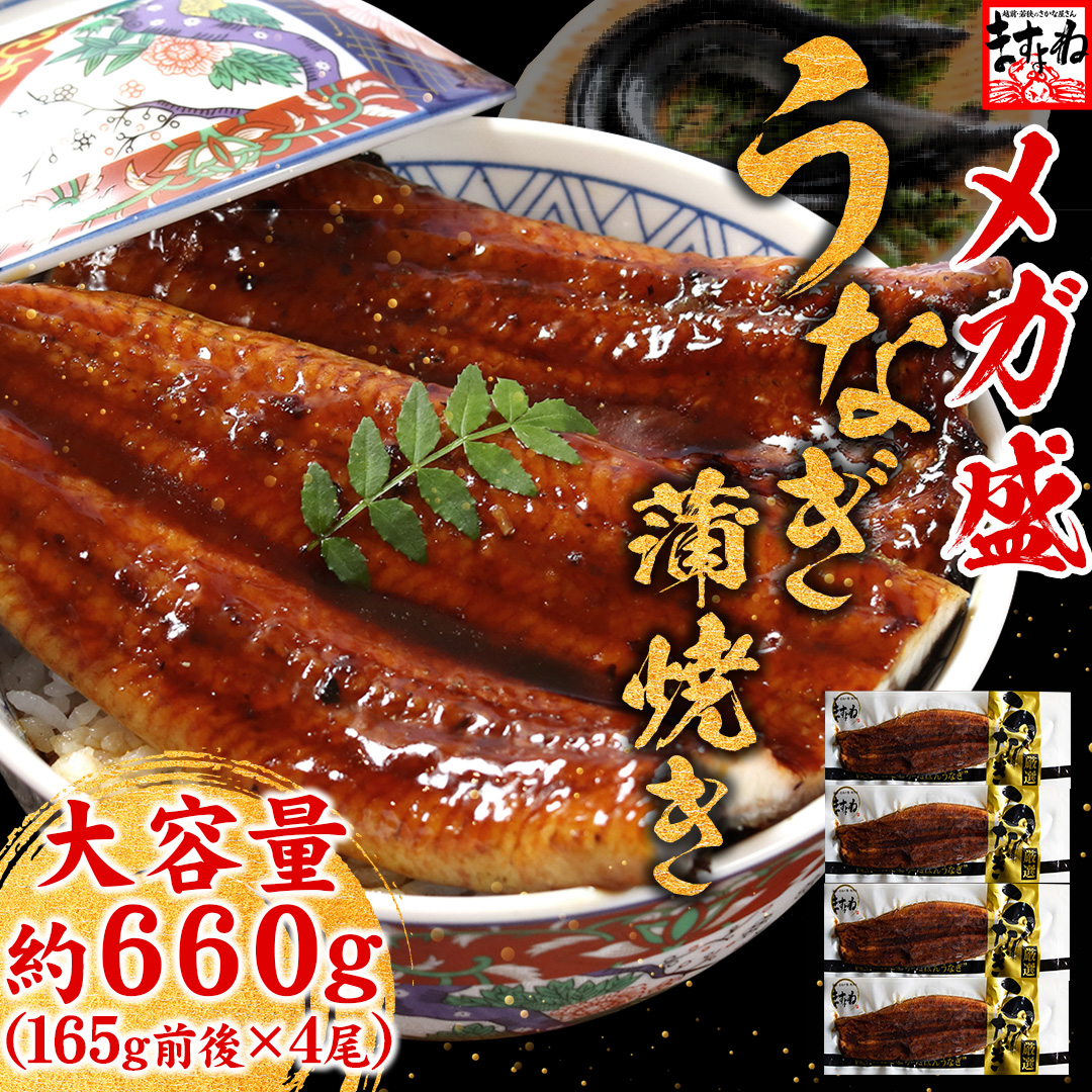 うなぎ 蒲焼き 鰻 大容量 にほんうなぎ蒲焼き 165g×4尾 計660g タレ山椒付き 食べ方ガイド付き 化粧箱入 シールのし対応 ギフト