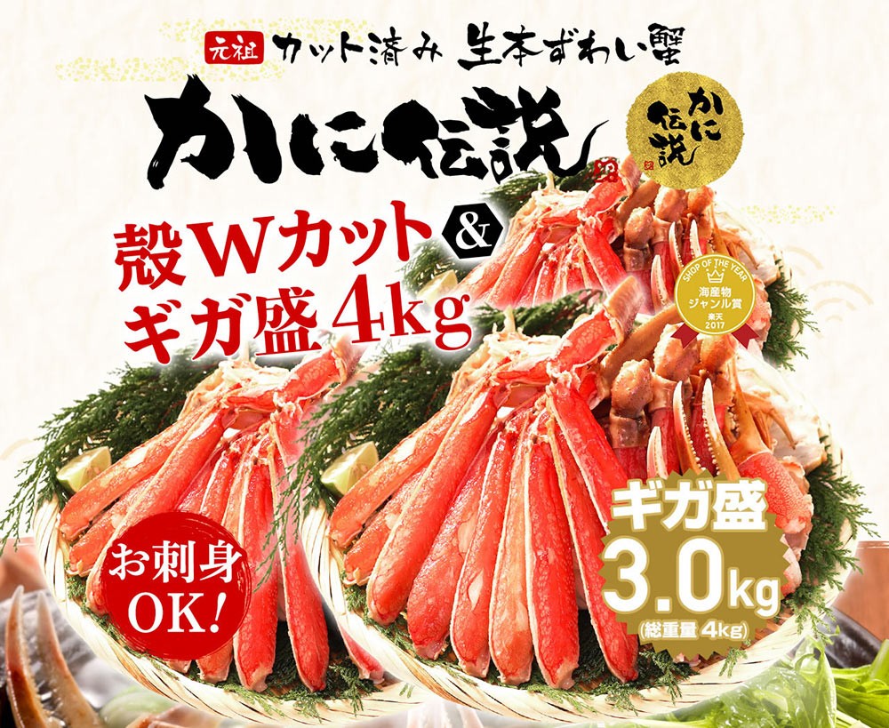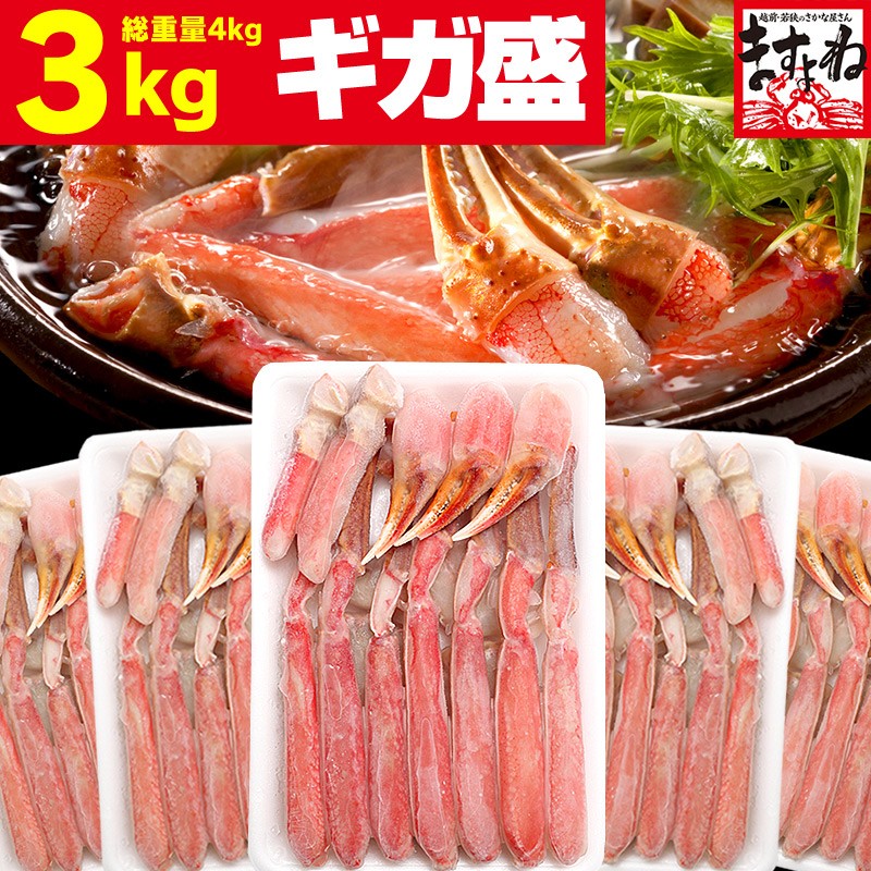 40%OFFクーポン有 爆買 ますよね カニ かに 蟹 ズワイガニ お刺身OK 元祖カット生ズワイ5箱セット正味3kg 総重量4kg 10人前 殻Wカット 食品ロス減 バラ配送不可