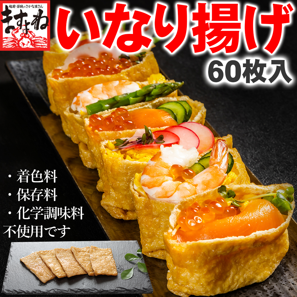 40%OFFクーポン有 ご注文順に発送中 無添加 味付 いなりあげ 稲荷揚げ60枚 4cm×8cm袋状 化学調味料/着色料/保存料不使用 おあげ いなり寿司 メール便