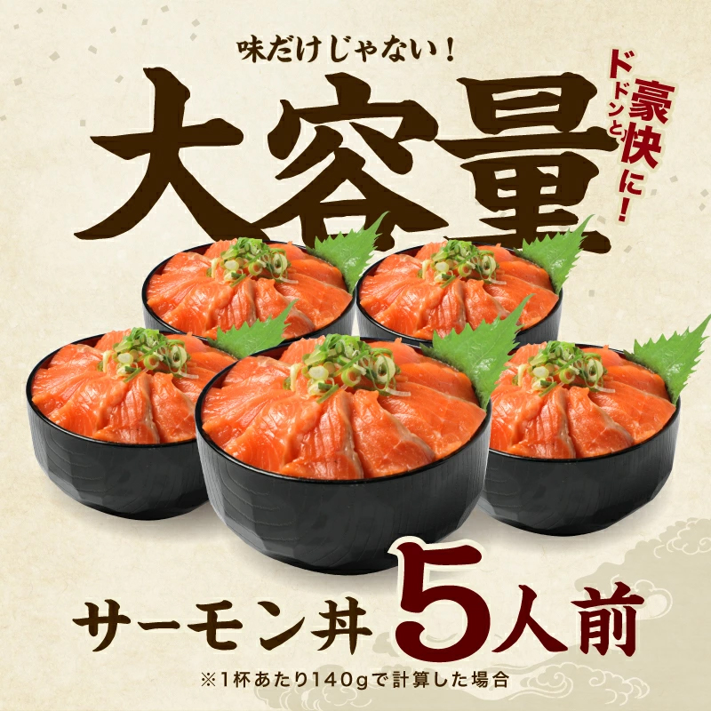 サーモン丼にして5人前の、たっぷり700g前後をお届け♪