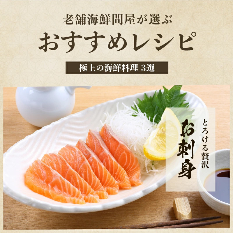 解凍後、お好みのサイズに切り分け、お刺身・どんぶり・お寿司などでお召し上がりください。もちろん、焼いてもOKです。