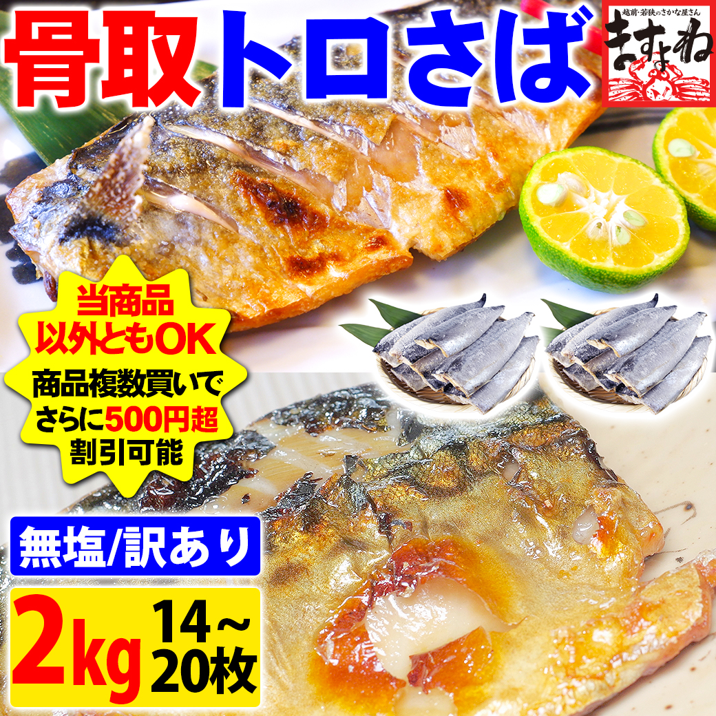 爆買 さば 鯖 サバ ますよね 骨取済 無塩 無添加 とろ鯖半身フィレ約2kg 1kg×2袋 14〜20枚 個凍 骨無し とろサバ DHA n-3系不飽和脂肪酸