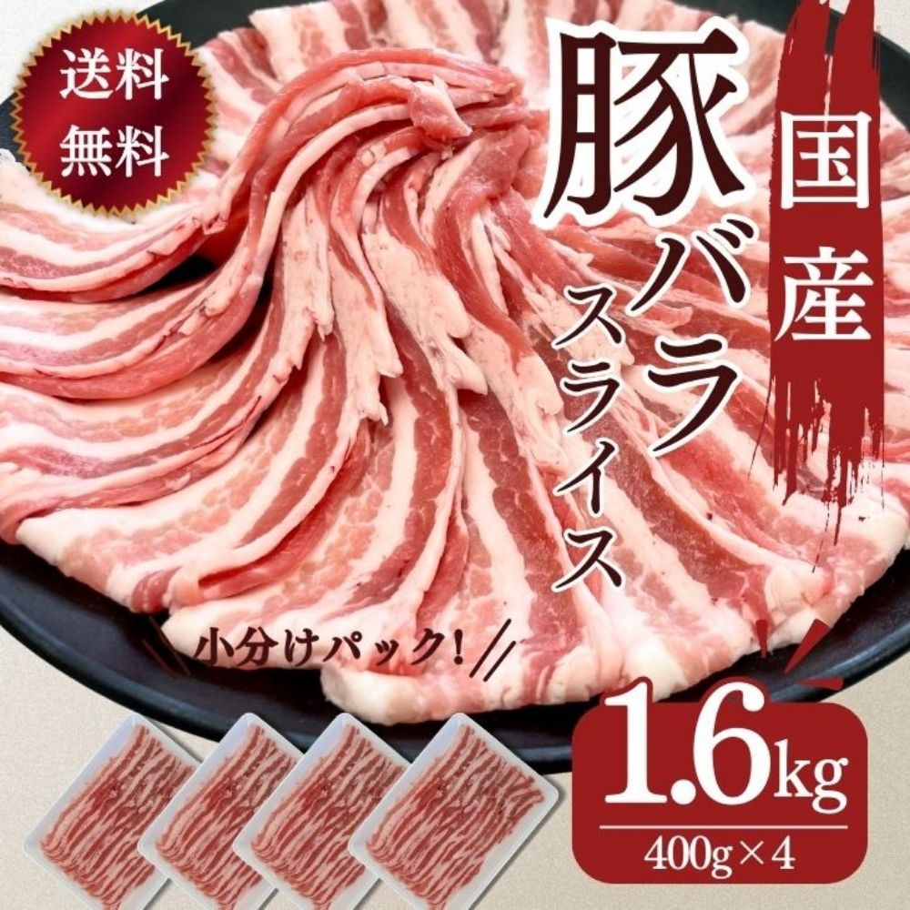 国産 豚肉 豚ばら 焼肉 送料無料 国産豚ばらスライス用 400g×4パック 計1600g お買い得 サムギョプサル