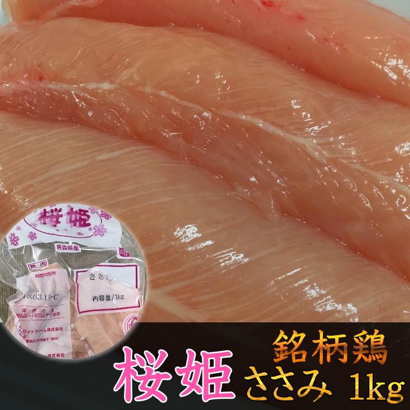 国産銘柄鶏 桜姫ささみ 1kg 産地真空冷凍 直送便 鶏肉 若鶏