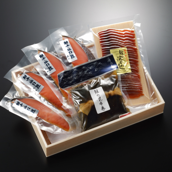 美味三選 (塩引き鮭切身、鮭の酒びたし、鮭の昆布巻)