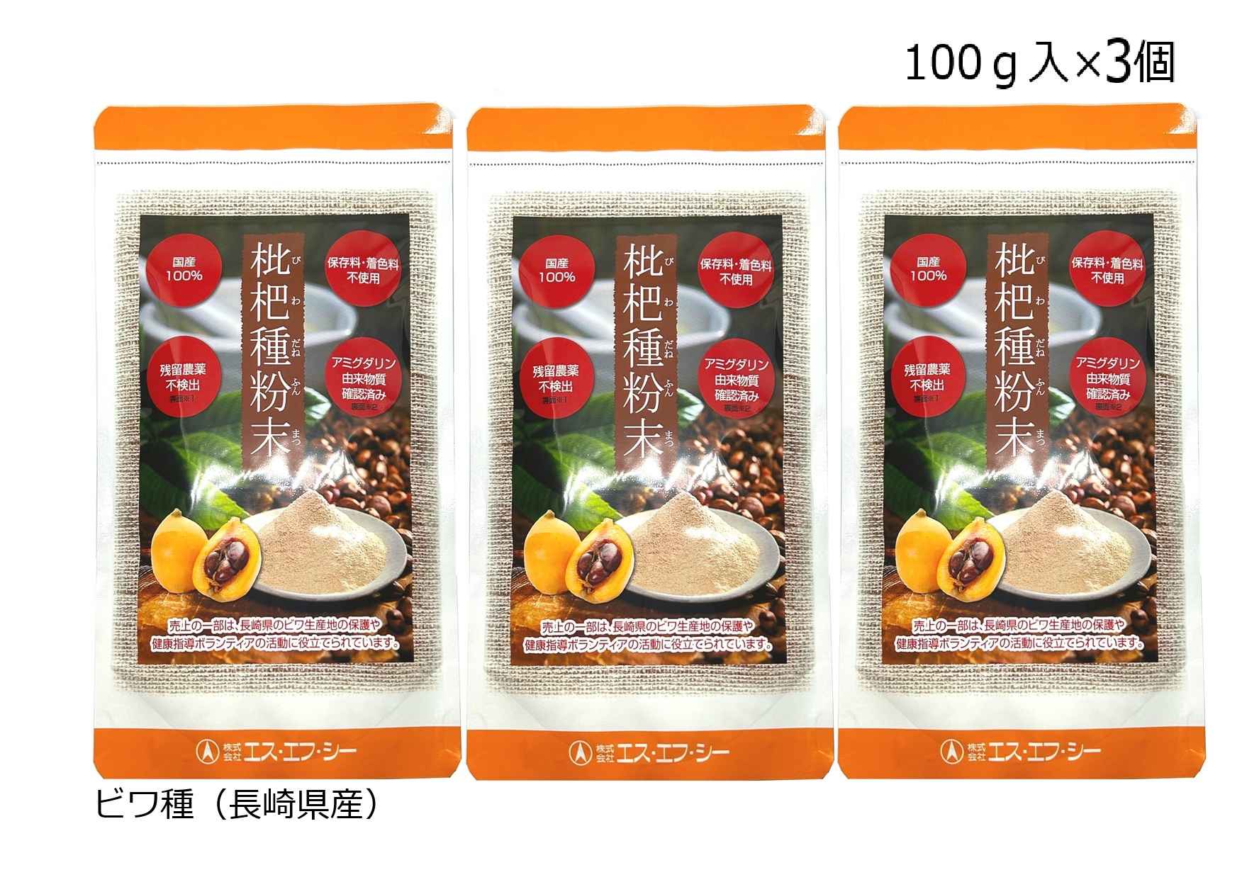枇杷種粉末 100g 3個セット エスエフシー びわ ビワ種