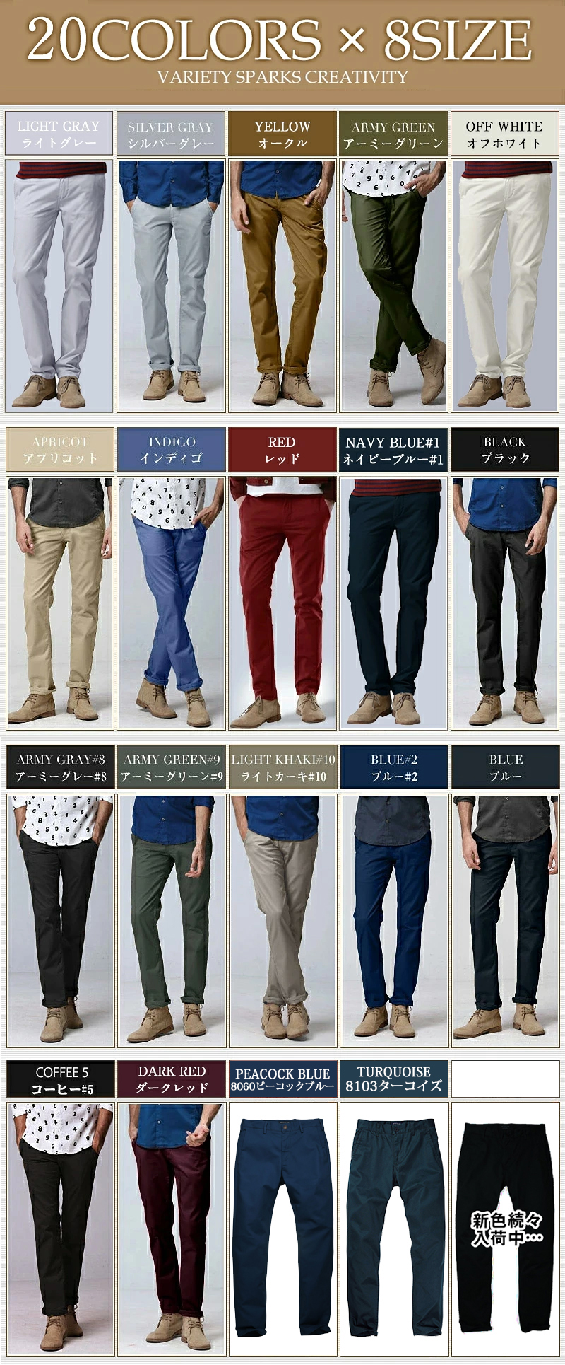 | オリジナルブランドMATCH麻吉が贈る スリム ストレッチ チノパンツがお客様のご要望にお応えし、より美しいシルエットへリニューアル! MATCHブランド得意のテーパードなシルエットを更に追求!裾に向けてゆるやかにシェイプをかける事により、脚のラインにフィットする美シルエットを実現!ちょいテーパードパンツになります。 綿素材を使用、肌に優しく、より動きやすくストレスフリーな穿き心地! 程よいのストレッチで窮屈を感じず、シワシワにならないのですらっとしたイメージを与える! 豊富なカラーバリエーションをご用意しておりますので色違いで揃えても良いですね!比較的合わせやすく新しい大人スタイルのコーディネートを演出してくれます。 生地のしっかりとした丈夫なカツラギ生地を引き続き採用。肌触りが良く綾織りなので、同じ糸の平織りよりも柔らかく若干光沢がありシワになりにくいのが特徴! 収納は機能性のある4ポケット仕様、サイドポケットとバックポケットは十分な深さがあり、財布やスマホが落ちたりする心配がなく、シンプルなデザインでヒップ周りをすっきり見せてくれますよ! サイズ展開もS〜5XLと豊富なサイジングで幅広い年代の方に穿いて頂けるようになっています。ロールアップすればこなれ感を出したスタイリングが出せてGOOD! | |