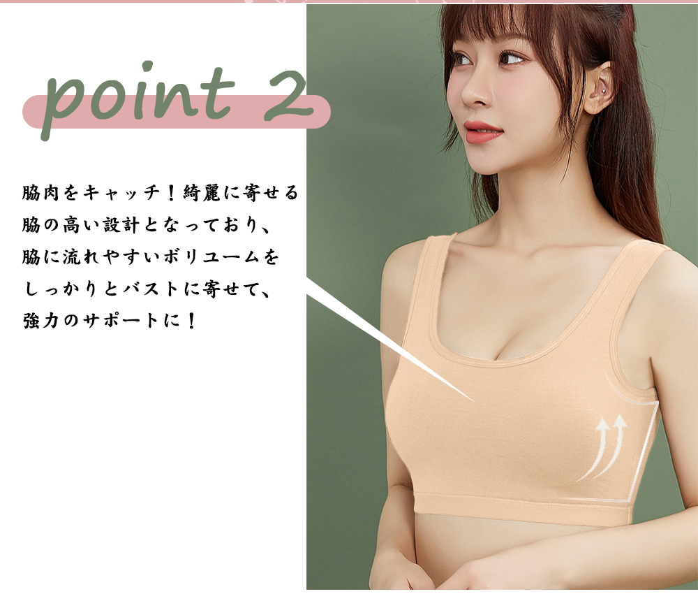 脇の高い設計となっており、脇に流れやすいボリユームをしっかりとバストに寄せて、強力のサポートに!