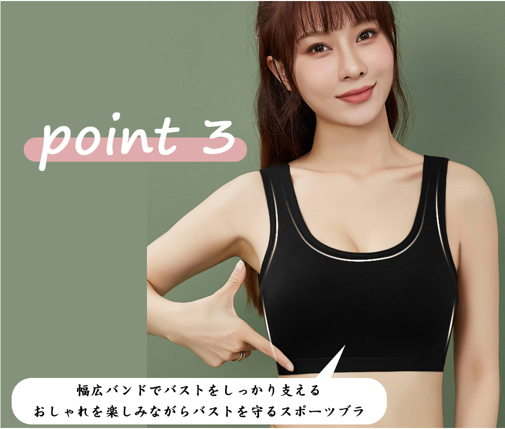 幅広バンドでバストをしっかり支えるおしゃれを楽しみながらバストを守るスポーツブラ