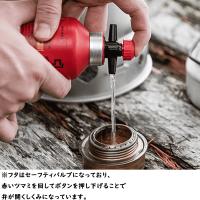 フタはセーフティバルブになっており、赤いツマミを回してボタンを押し下げることで弁が開くしくみになっています。