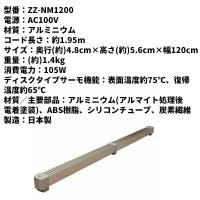 結露発生の原因となる窓際の温度差を少なくします 火災の心配がない安全設計。バイメタルサーモ(温度制御機能)付きでカーテンなどが触れても火災の心配はありません。 タイプ 120型 サイズ (約)幅120×奥行4.8×高さ5.6cm 重量/(約)1.4kg 消費電力 105W 材質/主要部品アルミニウム(アルマイト処理後電着塗装)、ABS樹脂、シリコンチューブ、炭素繊維 電源AC100V(50/60Hz) コード長さ約2m 製造日本製 60型 <br>送料無料 <br>北海道・沖縄・離島配送できません。