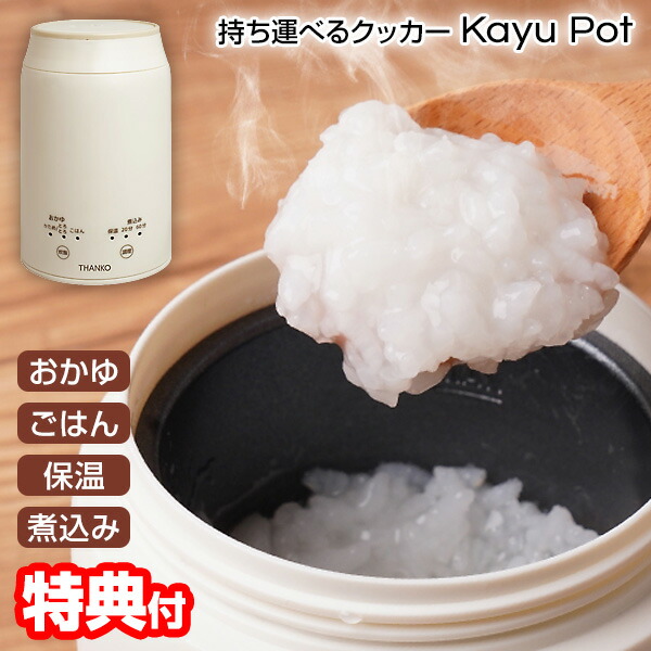 サンコー 持ち運びできるおかゆクッカー 「 KayuPot 」 RJAR25SWH THANKO 簡単操作 自分好みのおかゆが作れる おかゆメーカー おかゆ ごはん 保温 煮込み コンパクト おかゆクッカー 逆支弁構造 持ち運べる かゆポット簡単操作で、自分好みのおかゆが作れる。複雑な操作は一切なし!どなたでも簡単・お手軽におかゆを作ることができる、持ち運びできるおかゆクッカー「KayuPot」が登場。コンパクト&逆支弁構造で、こぼさずに安心して持ち運びができます。本体内部はフッ素加工釜、ふたは分解して洗えるのでいつでも清潔に使えて安 ....JAR25SWH kayupot 口コミ RJAR25S-WH カユポット クチコミ RJAR-25S-WH かゆポット レビュー RJAR25S 粥ポット 評判 サンコー THANKO サンコウ SANKO 通販 google グーグル yahoo ヤフー LINEショッピング 楽天市場