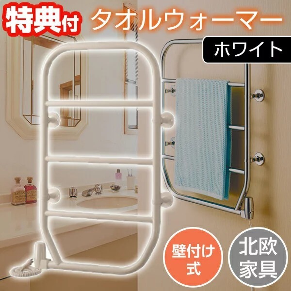 スウェーデンLVI社製の電気式ウォーマーを採用した、森永タオルウォーマー。パイプの中を電気ヒーターで加熱されたオイルが常に循環するので、タオルをかけておくだけで、梅雨時や冬のシャワーの後もドライ&クリーン、心地よい、ふかふかの状態で使用できます。シンプルで機能的なデザインに加え、消費電力も1000W以下で経済的。もちろん安全性も抜群です。タオル以外のちょっとした洗濯物もかけておくだけですぐ乾きます。サイズ:H800×W450×D90mm 重量:6kg コード:カールコード2m 7A 125V 消費電力:70W ※おまけはお一人様につき1点です。 <br>送料無料 <br>北海道・沖縄・離島配送できません。
