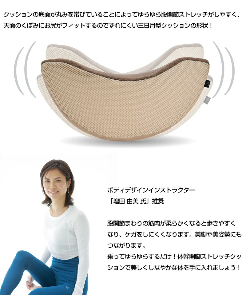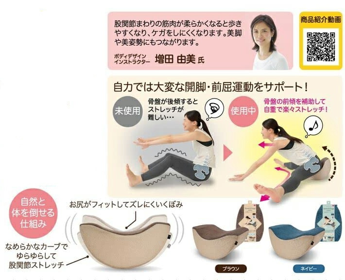 | 体幹開脚ストレッチクッションに座って体を前後にゆらすだけで簡単に股関節まわりのストレッチができます。 自力では大変な開脚・前屈運動をサポート! 自宅で簡単に「開脚運動」「前屈運動」2wayエクササイズ。 クッションの底面が丸みを帯びていることによってゆらゆら股関節ストレッチがしやすく、天面のくぼみにお尻がフィットするのでずれにくい三日月型クッションの形状! ボディデザインインストラクター「増田 由美 氏」推奨 カラー:ネイビー、ブラウン 材質:本体カバー/ポリエステル100%、中材/ポリエチレン樹脂 商品サイズ:約D33.5×W26×H15cm 商品重量:約210g 原産国:中国 ※お客様のモニターの設定により、実際の商品と多少色が異なる場合があります。あらかじめご了承ください。 |