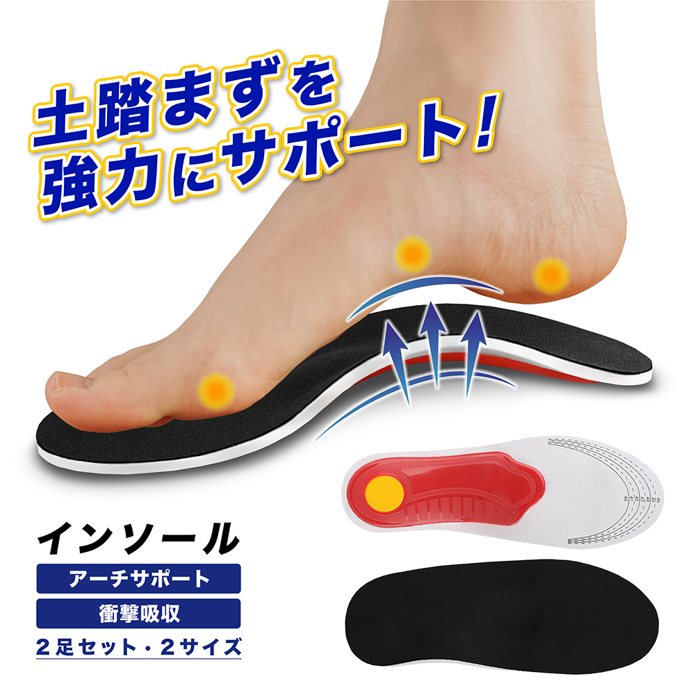 インソール 扁平足 土踏まず 偏平足 衝撃吸収 スポーツ 中敷き アーチサポート 足底筋膜炎 O脚 2足セット ハイアーチ