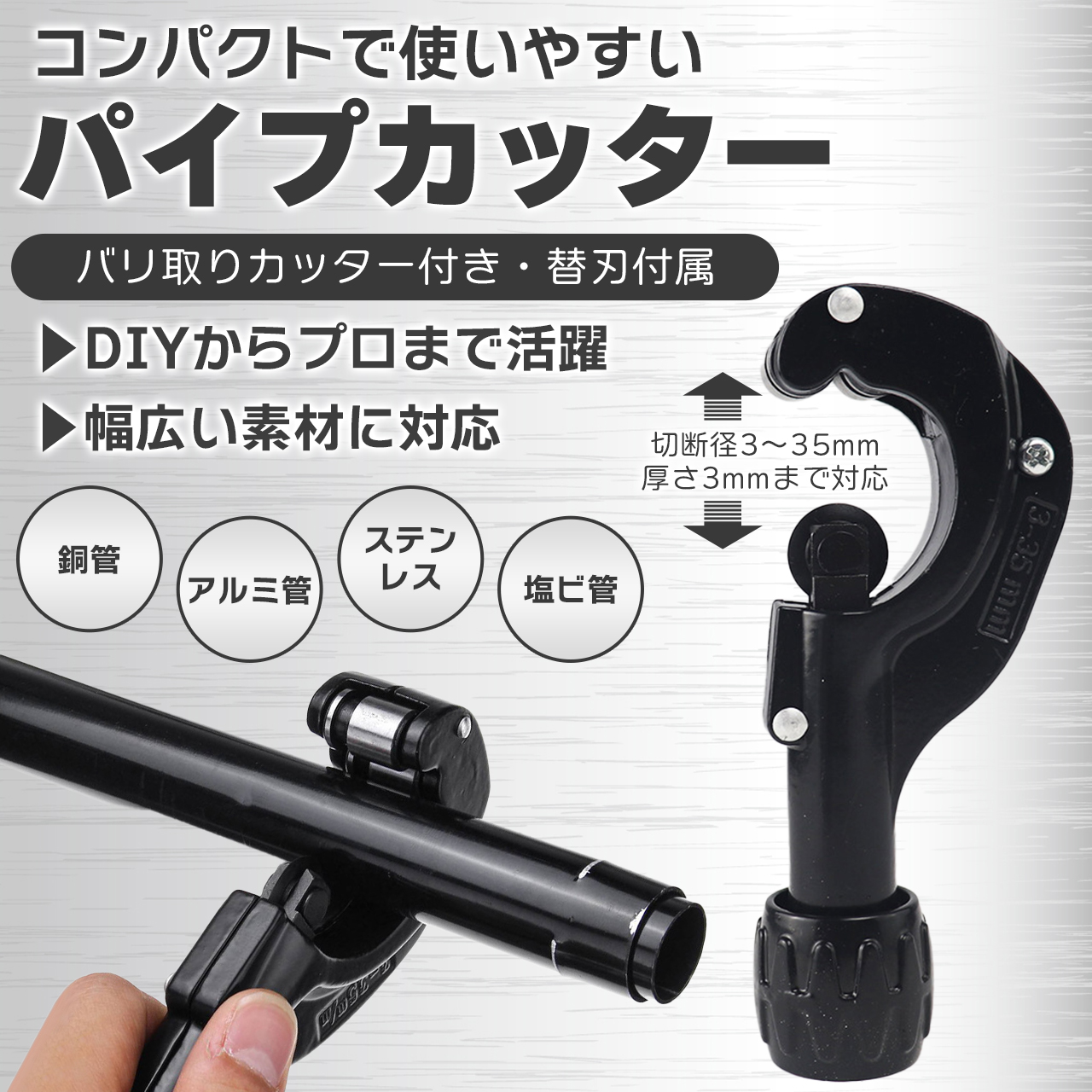 パイプカッター 切断 パイプ 直径3-35mm ステンレス アルミ 銅 真鍮 塩ビ 断裁 チューブ 工具 DIY 道具 作業 替刃