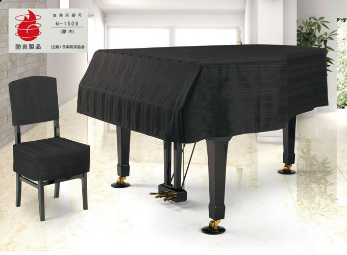 ■商品の特徴 日本防炎協会認定タグ付き!大手メーカーの日本製難燃糸使用。高厚地のジャガード織でピアノを保護。黒の落ち着いた地模様はオシャレでシック。一般家庭のお部屋から学校・公共施設まで失火の対策としても安心してお使いになれます。