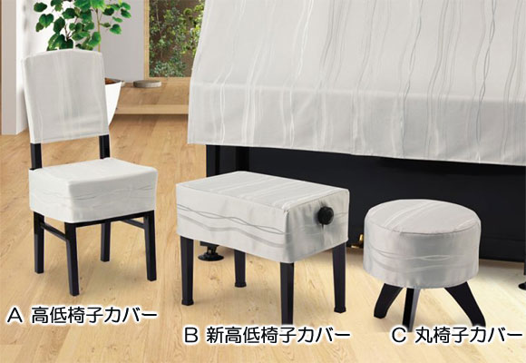 | ■サイズ ・A 高低椅子(背付き椅子)カバー:フリーサイズ ・B 新高低椅子カバー:オーダー品(受注生産)*納期:約1〜2週間 ※ご注文の際、備考欄に座面のタテ×ヨコサイズと高さを調節する為のハンドルの数と取り付け位置をご記入ください。 ![]() ・C 丸椅子カバー:フリーサイズ ■商品の特徴 立体感のあるエンボス加工。きらきら光る水の流れのようなウェーブストライプ。 ■仕様 ・カラー:ライトグレー系レザー風ウェーブ柄 ・素 材:ジャガード織 ポリエステル100% エンボス加工 ・日本製 ■注意事項 画像にあるピアノ本体用カバーは別売りです。 画像の色合いと、実際の商品の色合いが若干違う場合がございます。ご了承ください。 ご希望の場合は、生地見本をメーカーより郵送できますのでお申し付けください。 |