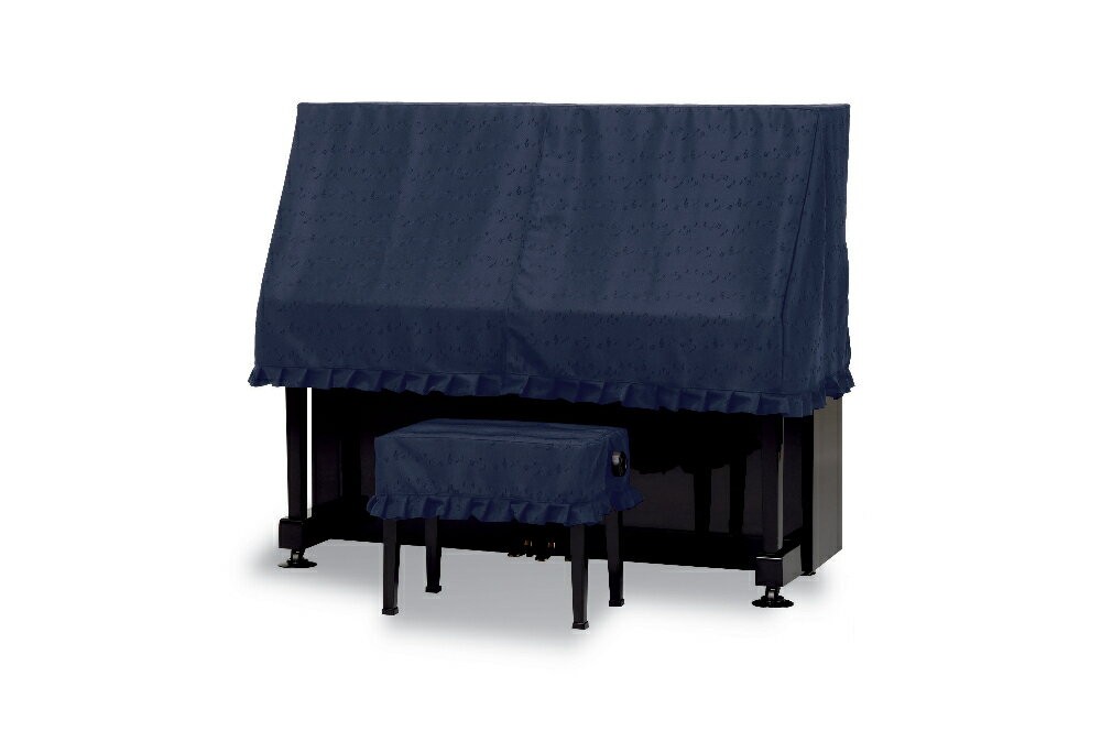 吉澤 ハーフカバー(ピアノケープ) PC-629GB ダークブルー フクレ楽譜柄 【受注生産】 ※ピアノ椅子カバーは別売りです