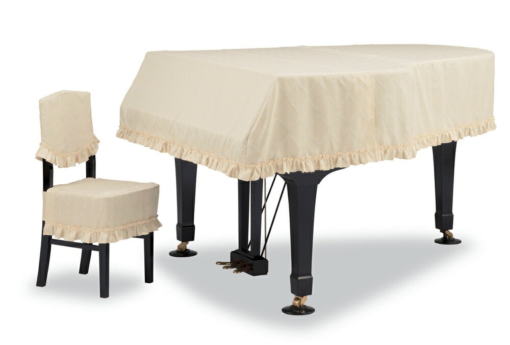 吉澤 グランドカバー GP-690CI アイボリー 音符&ローブ柄ジャガード織 【受注生産】 ※ピアノ椅子カバーは別売りです