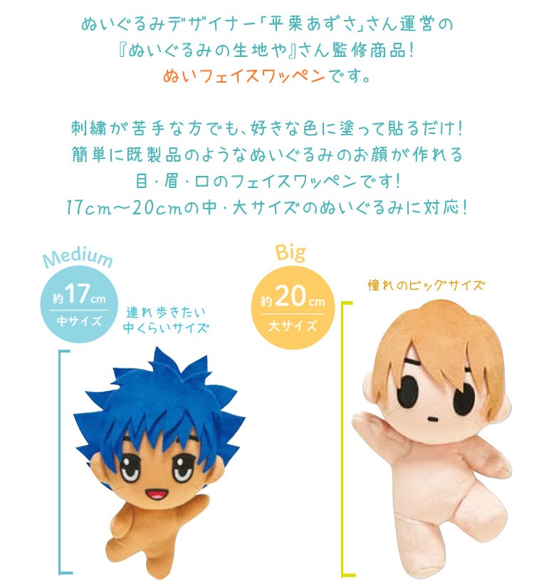 平栗あずささん著のてづくり推しぬいBOOKの中・大サイズのぬいぐるみに対応。