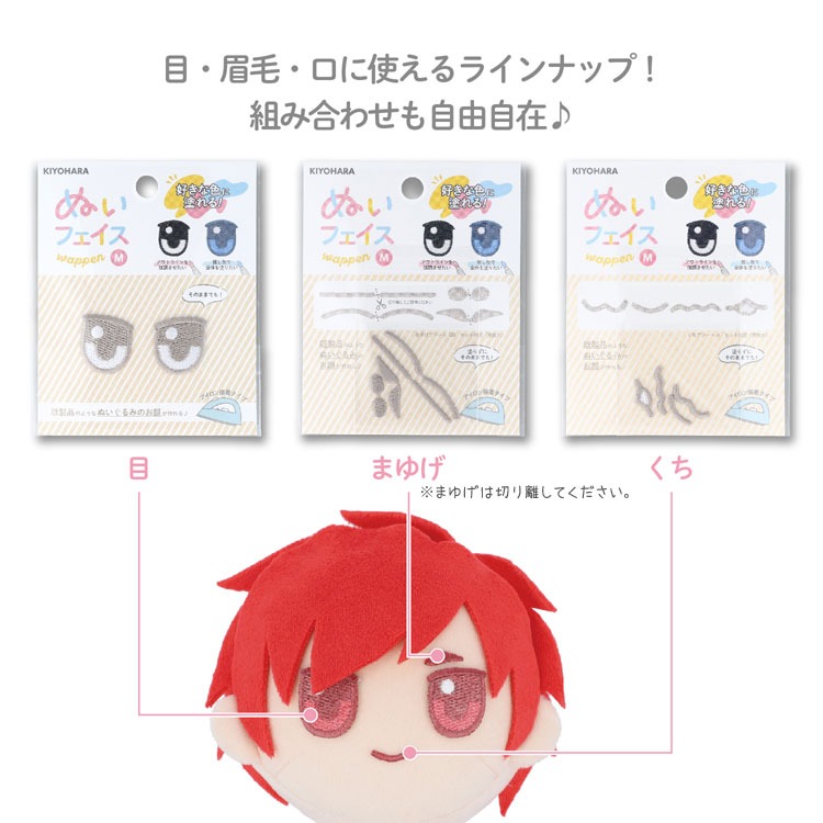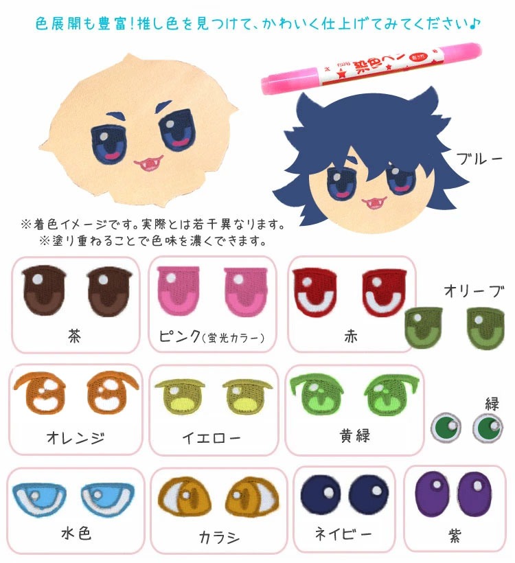 好きな色に塗れる♪『ぬいフェイスワッペンM*Part1』<アイロン接着タイプ>[4L]