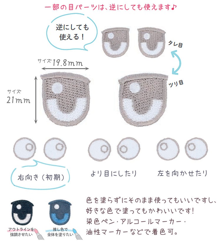 (1個=目は両目で一組 / 眉、口はアソートセットで一組です)