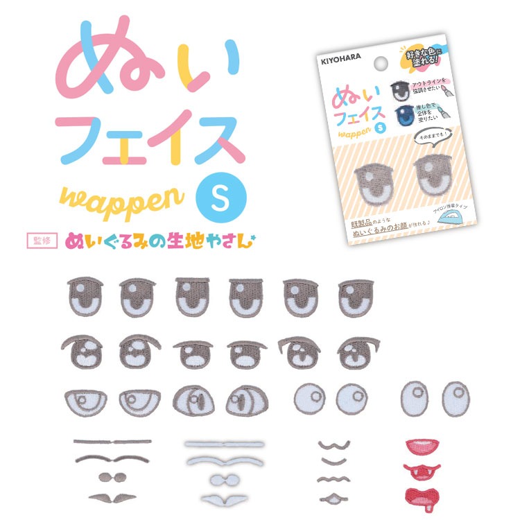 好きな色に塗れる♪『ぬいフェイスワッペンS*Part1』<アイロン接着タイプ>[4L]