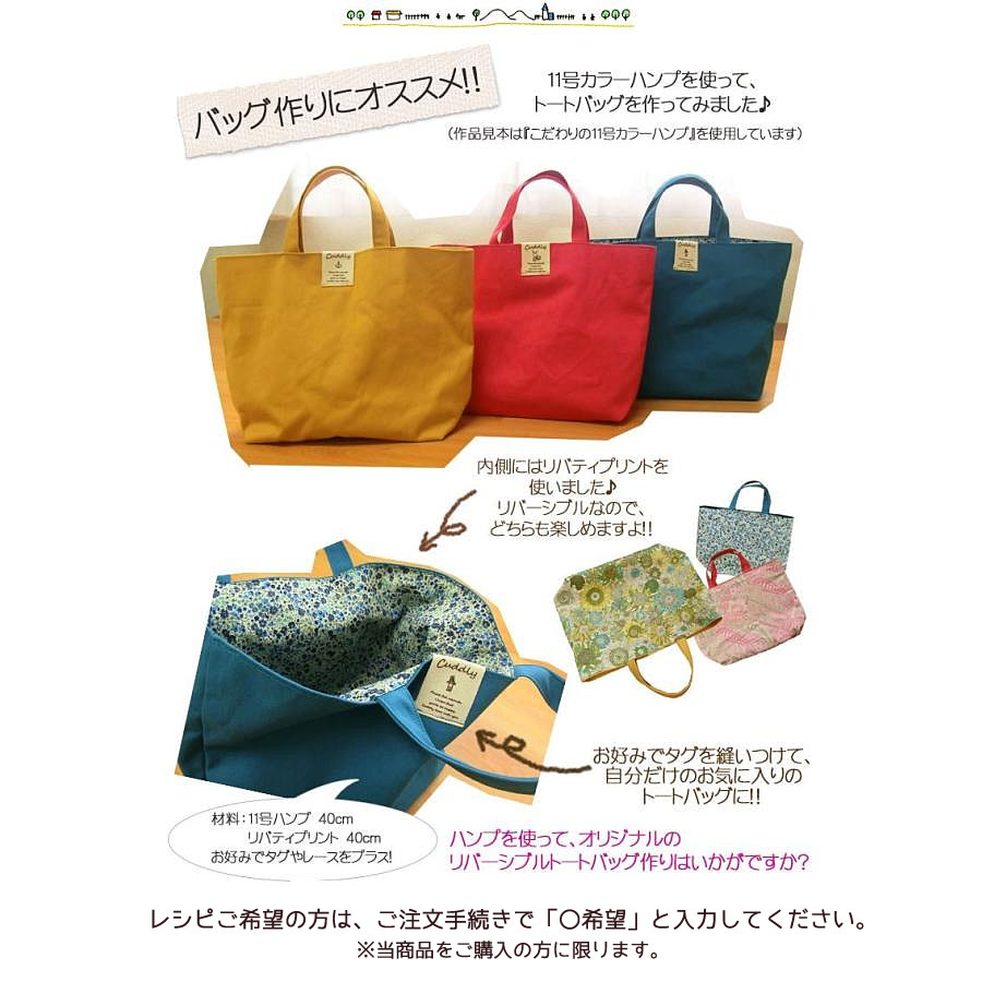 ★ハンプを使ったリバーシブルトートバッグのレシピがあります♪