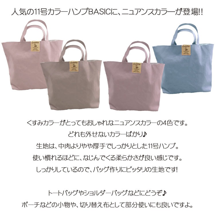 ☆レシピあります☆ *ニュアンスカラー* 11号カラーハンプ生地 BASIC バッグ作りにおすすめ