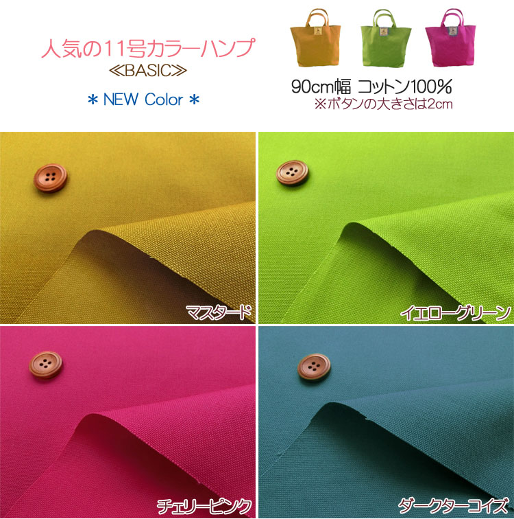 ☆レシピあります☆ 11号カラーハンプ生地 BASIC New Color バッグ作りにおすすめ(10008357)