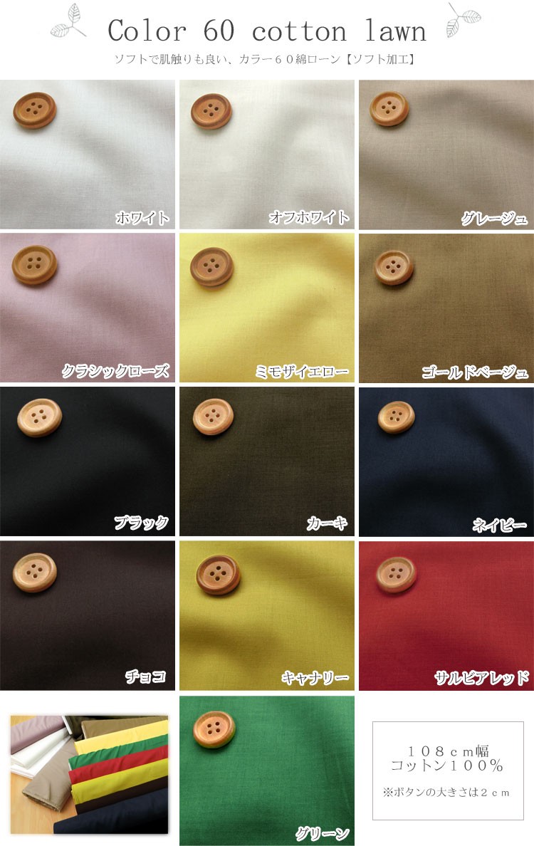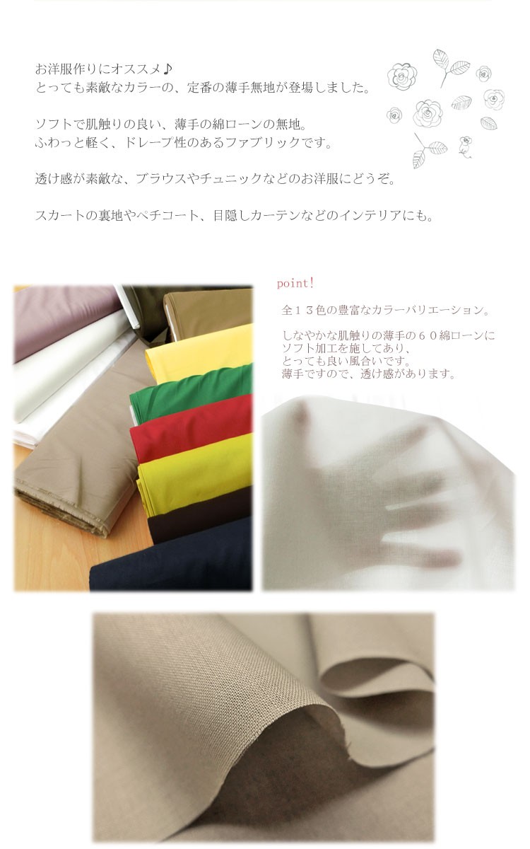 お洋服にオススメ ソフトで肌触りも良い カラー60綿ローン生地 (10010207)