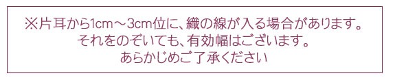 ※片耳1cm〜3cm位に、織の線が入る場合があります。