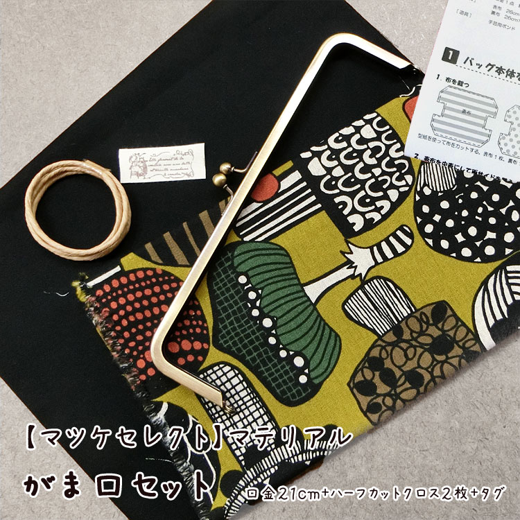 ★レシピあります【マツケセレクト】マテリアル【がま口セット*口金21cm】≪シエニ*オリーブイエロー&無地≫ [3E-U]
