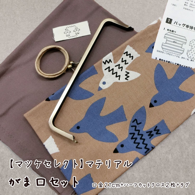 ★レシピあります【マツケセレクト】マテリアル【がま口セット*口金21cm】≪フライングバード&無地≫ [3E-U]