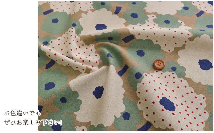 生地は、やや薄手でしっかりとしたコットンリネンキャンバス。
