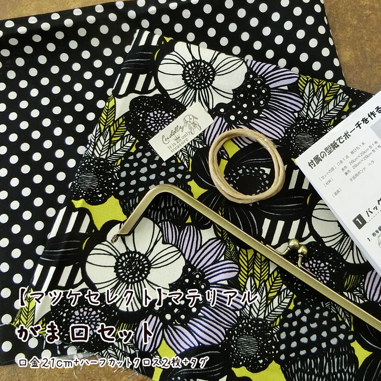 ★レシピあります【マツケセレクト】マテリアル【がま口セット*口金21cm】≪モダンアートフラワースモール&ドット≫ [3E-U]