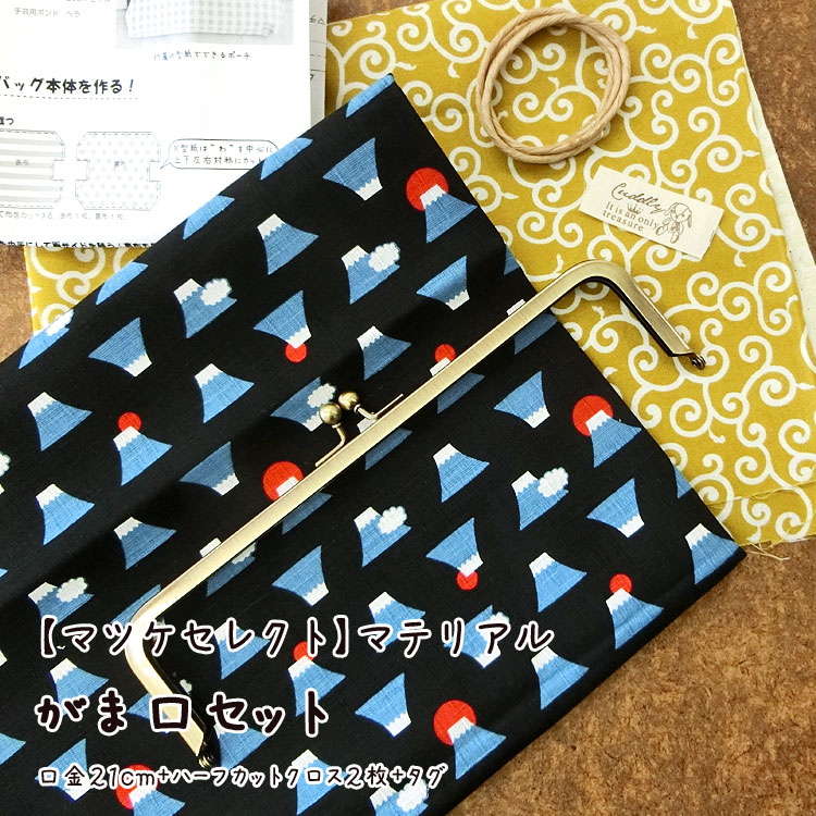 ★レシピあります【マツケセレクト】マテリアル【がま口セット*口金21cm】≪富士山&唐草≫ [3E-U]