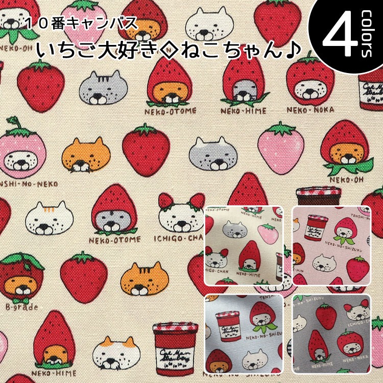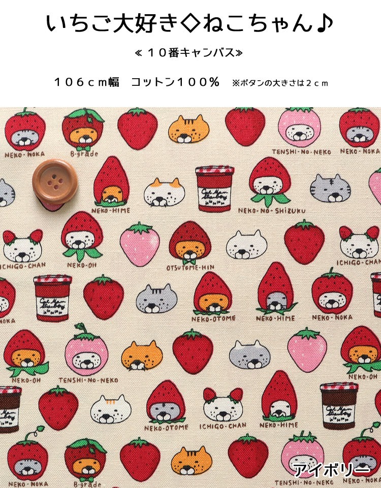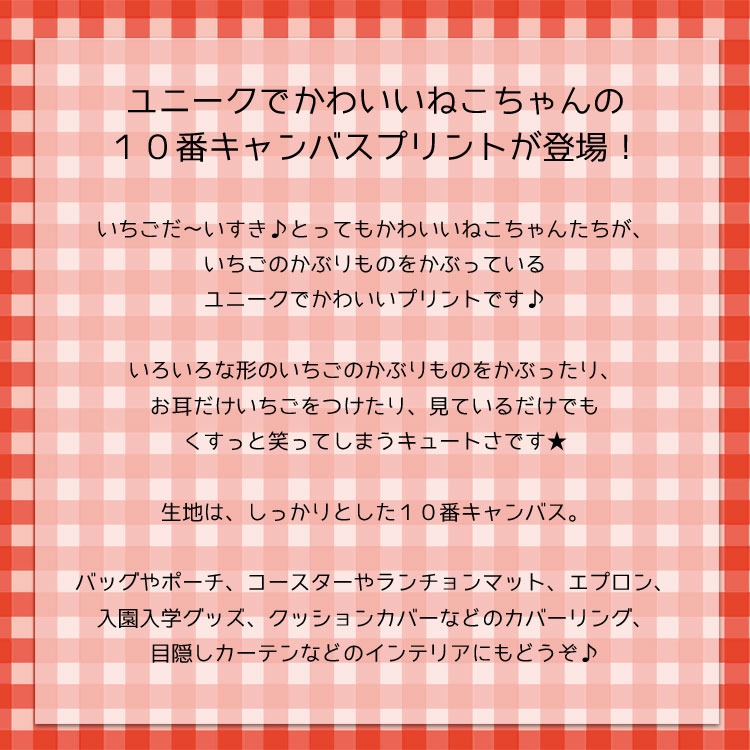 ☆レシピあります☆いちご大好き◇ねこちゃん 10番キャンバス生地